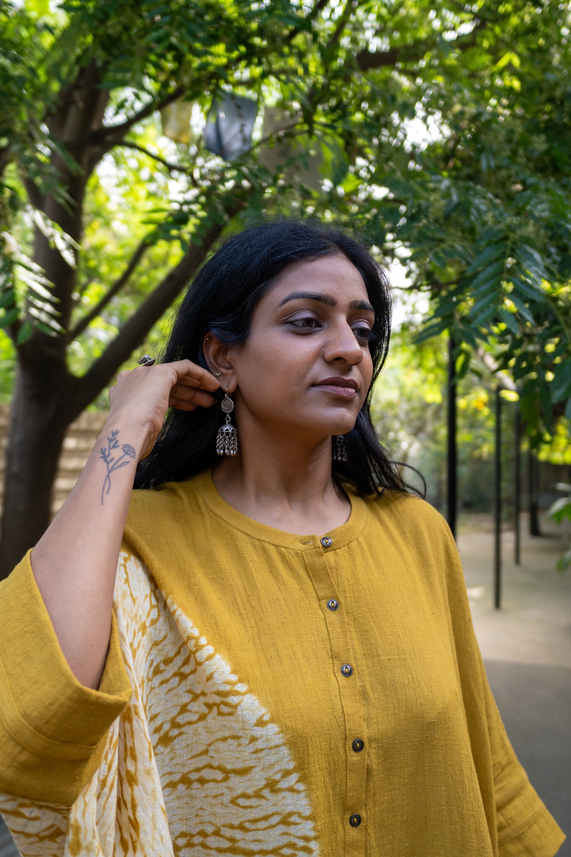 It carries the strength of handwoven khadi and the delicacy of fine handwork, almost like wearing art.